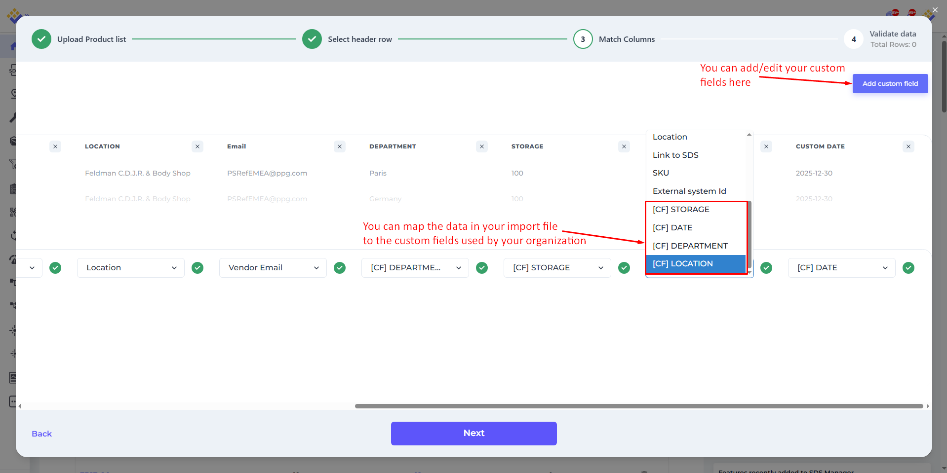 SDS Manager now supports custom field import. This means you can include your own custom field values when importing data into your Safety Data Sheet inventory.