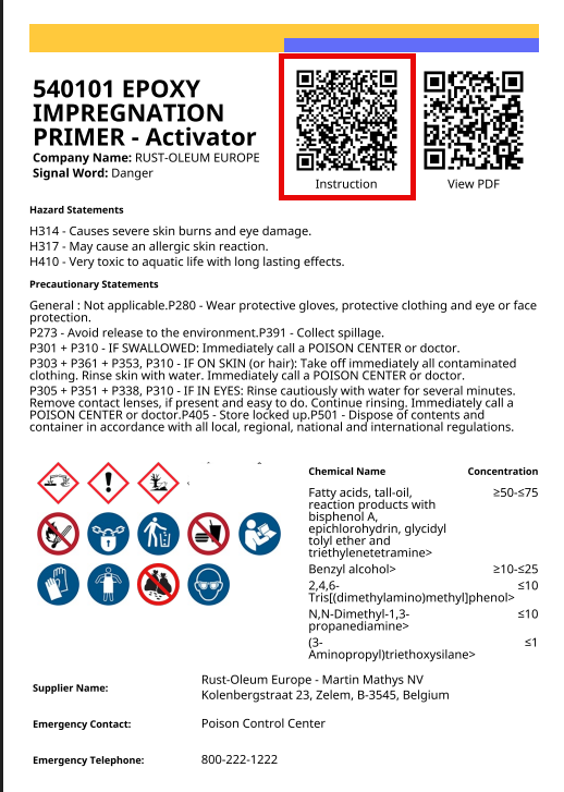 For chemicals that have been risk assessed, each label will include a QR code that links directly to the corresponding work instruction. Employees can easily access safe handling guidelines by simply scanning the QR code with their phone.