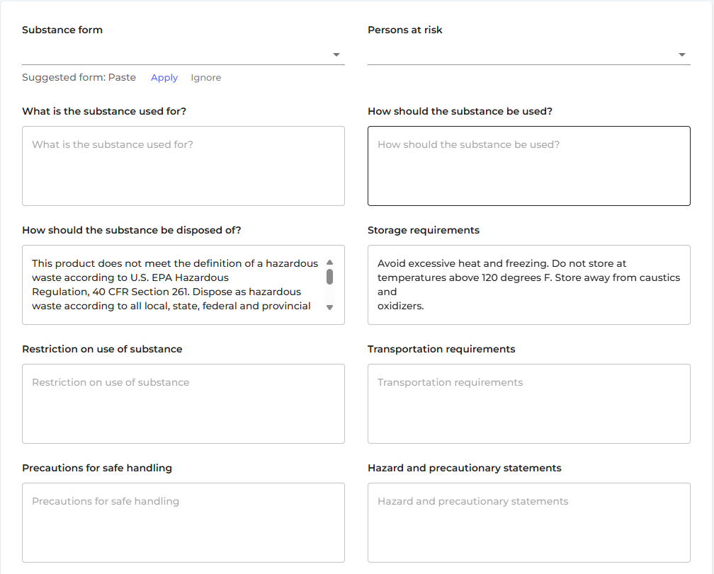 Section Selection – Choose which sections of the SDS to include, so summaries contain only the information most relevant for your employees or documentation needs.