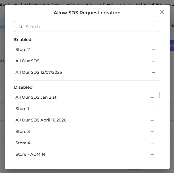 QR User Setting: Allow/Disallow SDS Request Creation Admins can now control per-account whether QR users are permitted to create SDS requests. This is configurable from the user settings panel.
