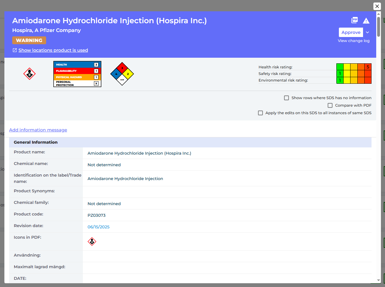 - Functionality to compare two SDS in side-by-side view - useful when you are evaluating two alternative chemicals. Read more...