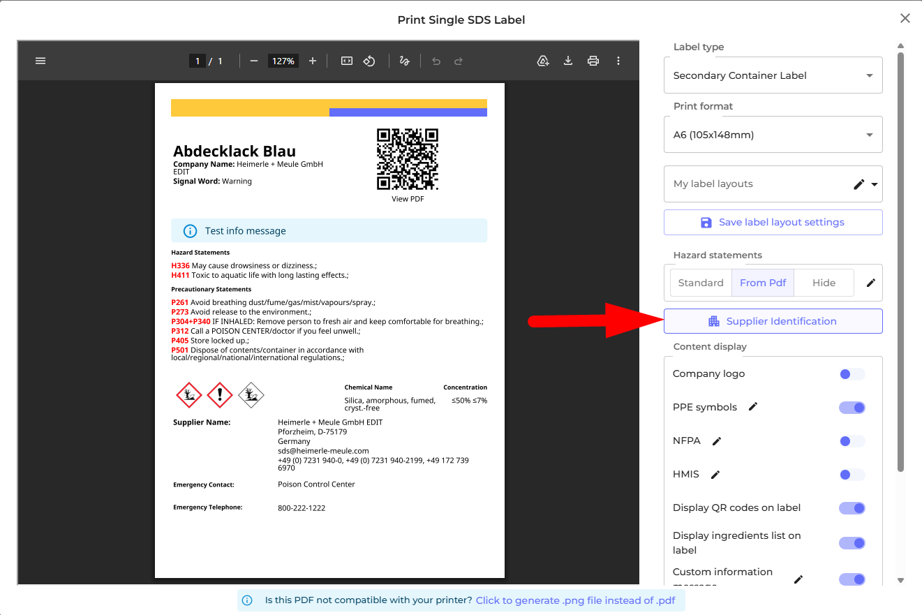 SDS Label Printing