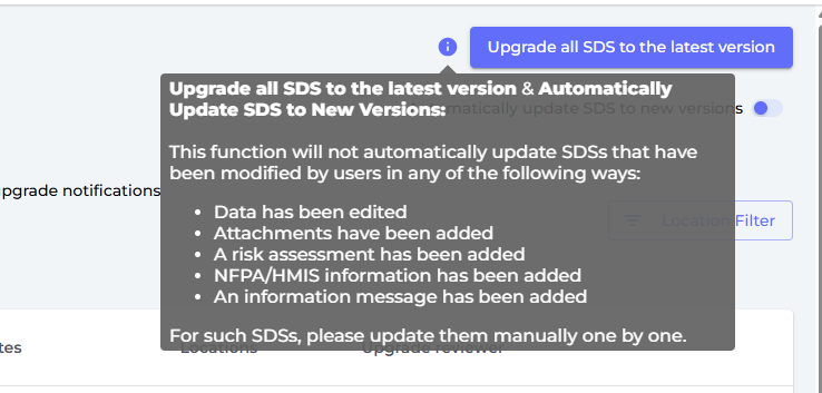 SDS Where Newer Version Exists — Additional Information The "SDS where newer version exists" page now displays additional information to help users understand the available update before acting.