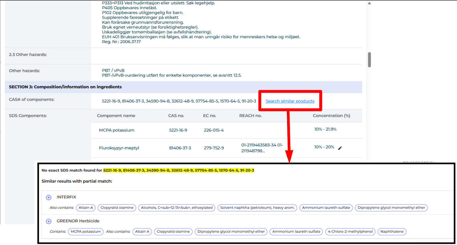Clearly indicate which CAS numbers are present in an SDS when users search by CAS.